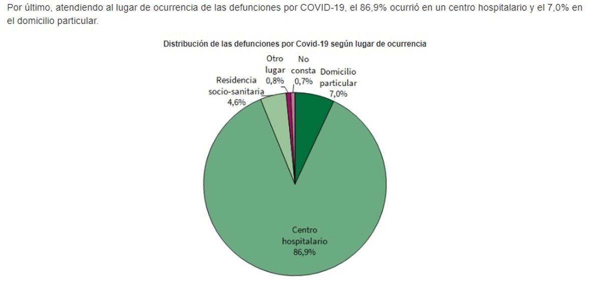 Gráfica de las defunciones por Covid-19 en Andalucía en 2021, según el lugar de la muerte. - IECA