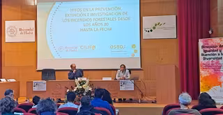 De este modo, Porrero ofreció un recorrido del trayecto de la organización de la defensa contra incendios del país. Por su parte, y de manera complementaria con la conferencia anterior, Castellnou disertó sobre la situación actual y perspectivas futuras de la lucha contra el fuego forestal, centrándose en las características y comportamiento de los incendios de sexta generación, en el papel de los pirocúmulos y su evolución a pirocumulonimbos, y en la necesaria reorientación de la política de defensa contra incendios.