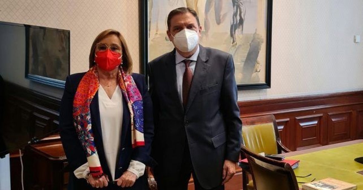 El ministro de Agricultura, Luis Planas, y la coordinadora general del PSOE de Huelva y diputada nacional, María Luisa Faneca.