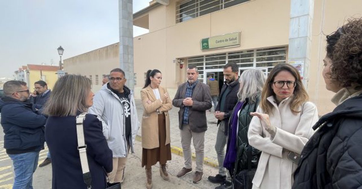 Miembros del PSOE junto al centro de salud de Lepe (Huelva). - PSOE DE HUELVA