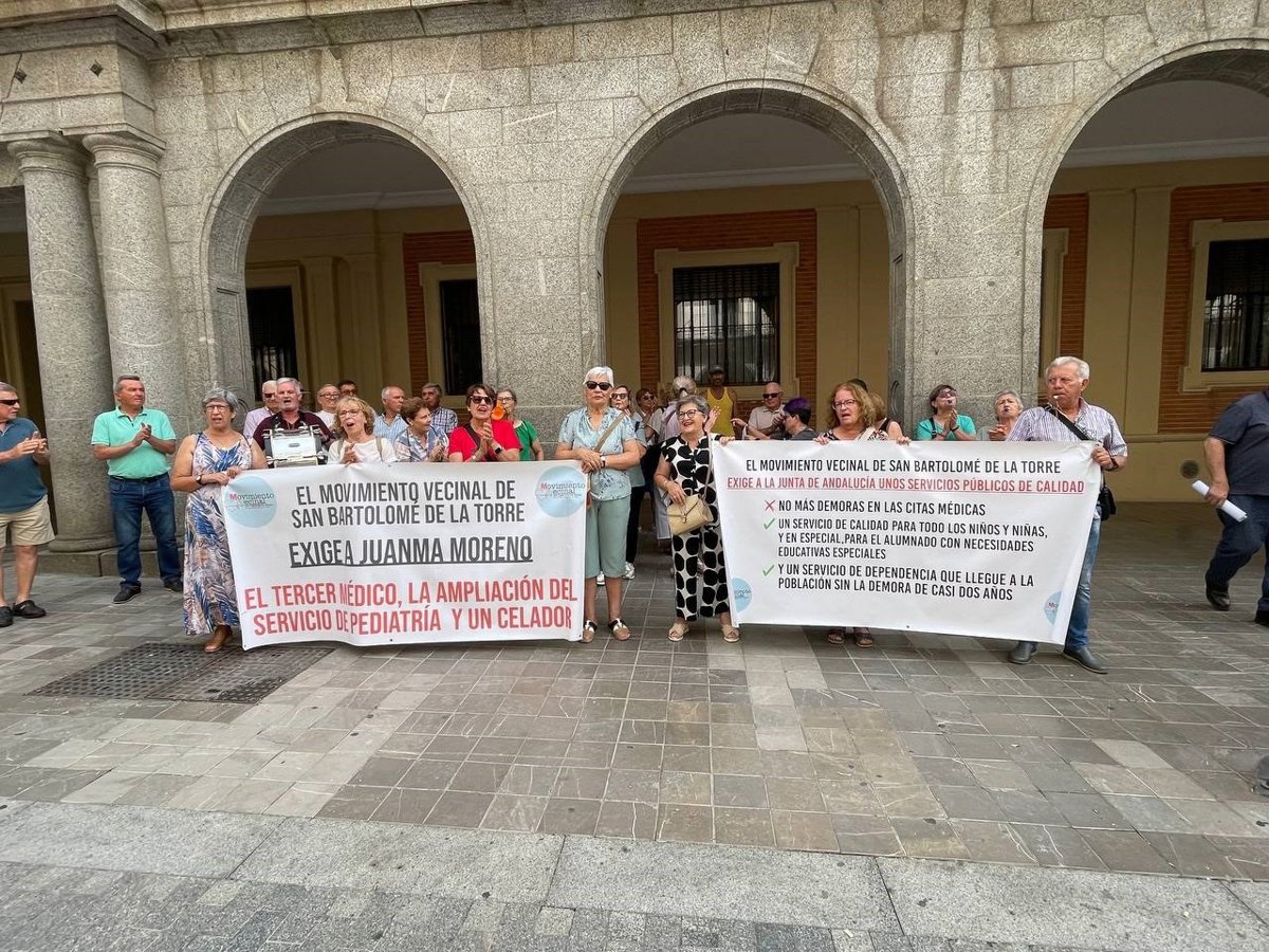Concentración de vecinos de San Bartolomé de la Torre (Huelva) a las puertas de la Delegación de Salud. - PSOE DE HUELVA