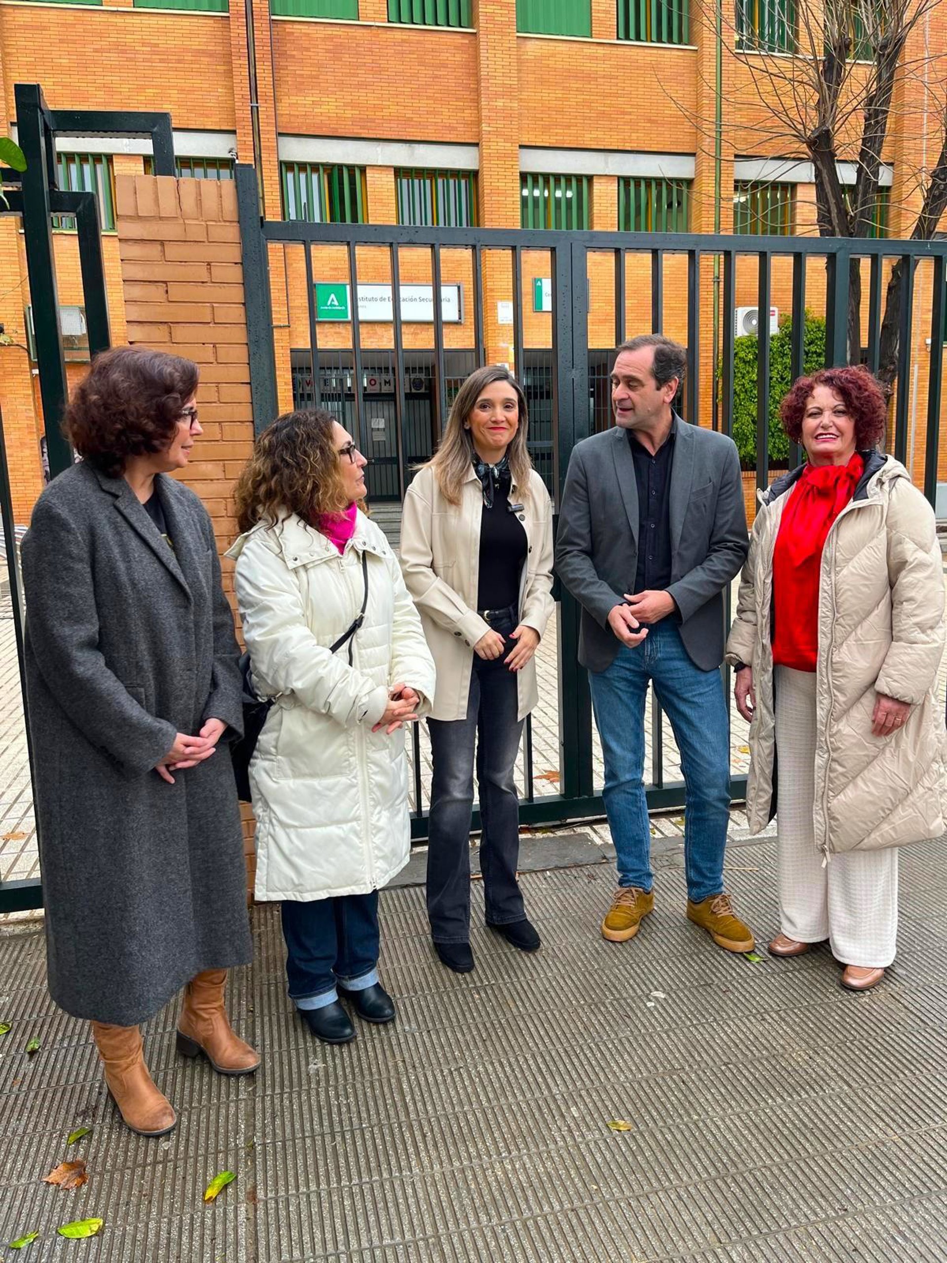 La portavoz del PSOE-A, María Márquez, en una atención a medios ante el IES 'Llanes' de Sevilla. - PSOE-A