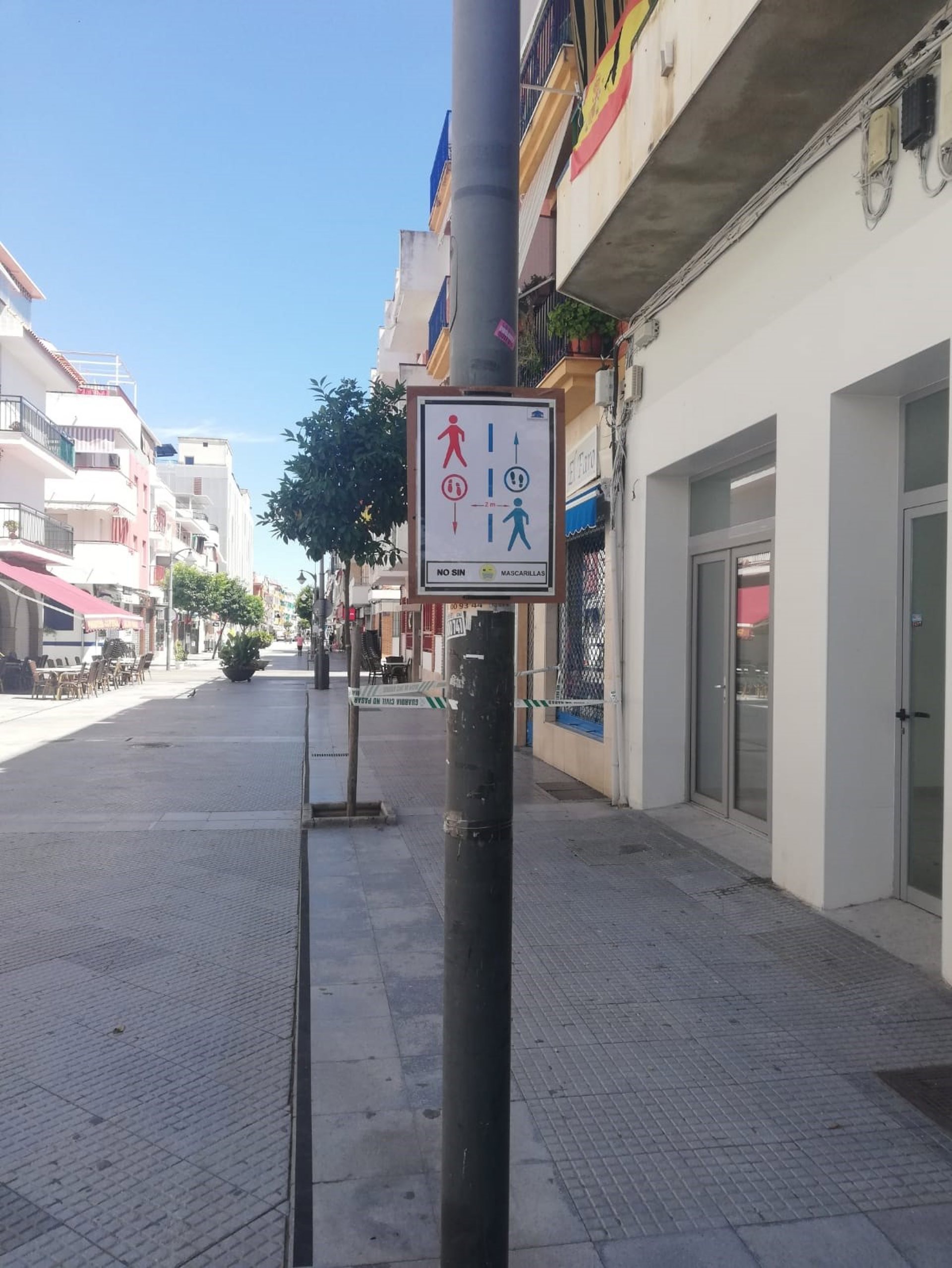 El Ayuntamiento de Punta Umbría (Huelva) ha ordenado el paso y señalizado el sentido de la marcha de los peatones en la calle Ancha "para que los viandantes paseen con las máximas garantías de seguridad, evitando en lo posible los contactos y aglomeraciones".