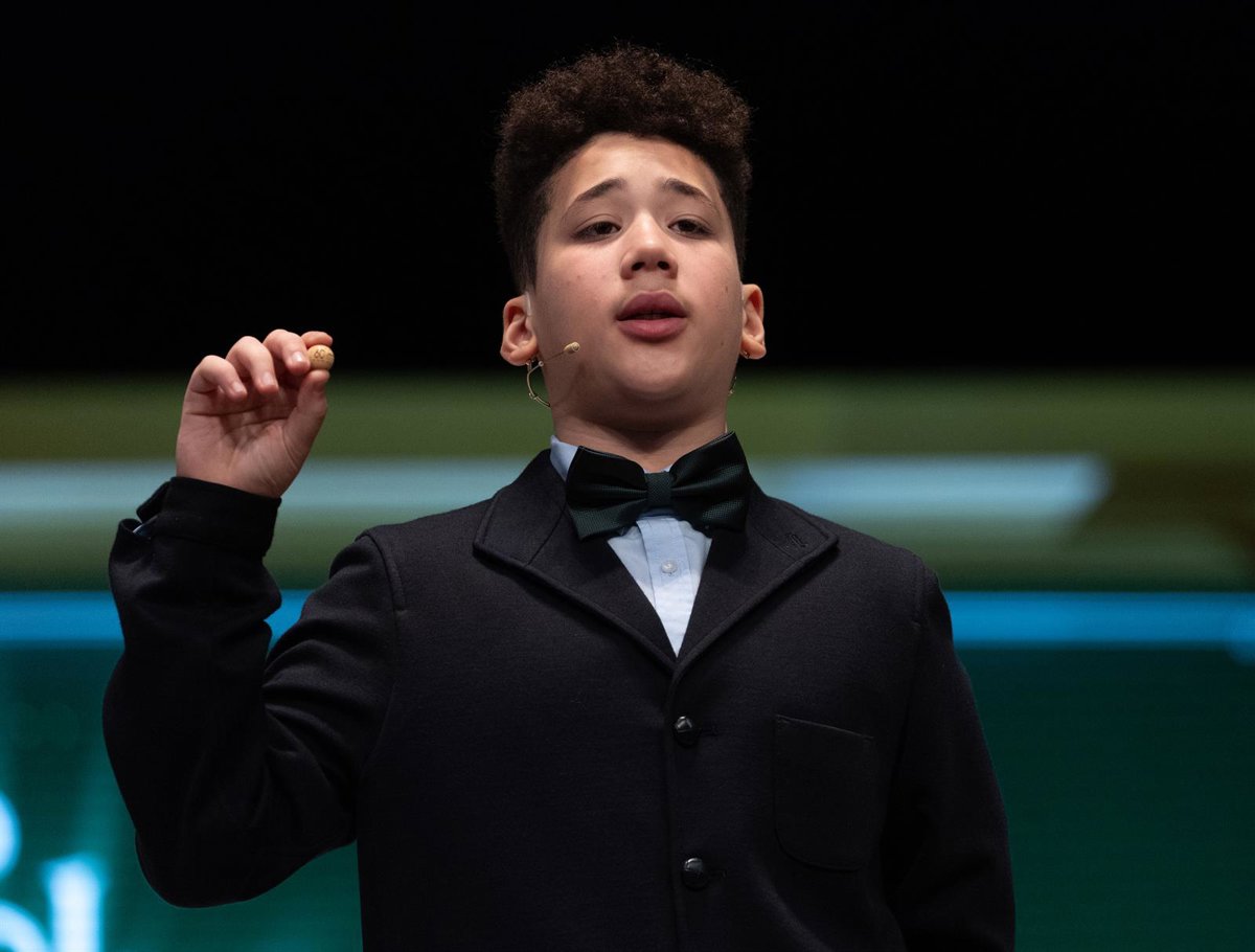 Uno de los niños canta uno de los quintos premios, el número 57421, durante el Sorteo Extraordinario de la Lotería de Navidad 2023. - Eduardo Parra - Europa Press