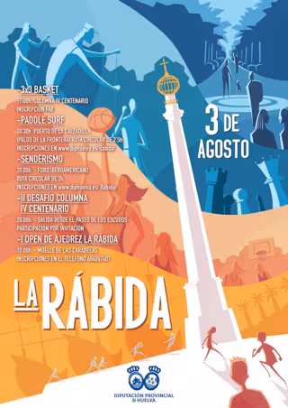 La Unidad de Gestión de La Rábida (UGR) de la Diputación de Huelva, con la colaboración de federaciones deportivas y entidades especializadas han diseñado una completa programación de actividades que se desarrollarán a lo largo del jornada de este domingo, 3 de agosto, en La Rábida.