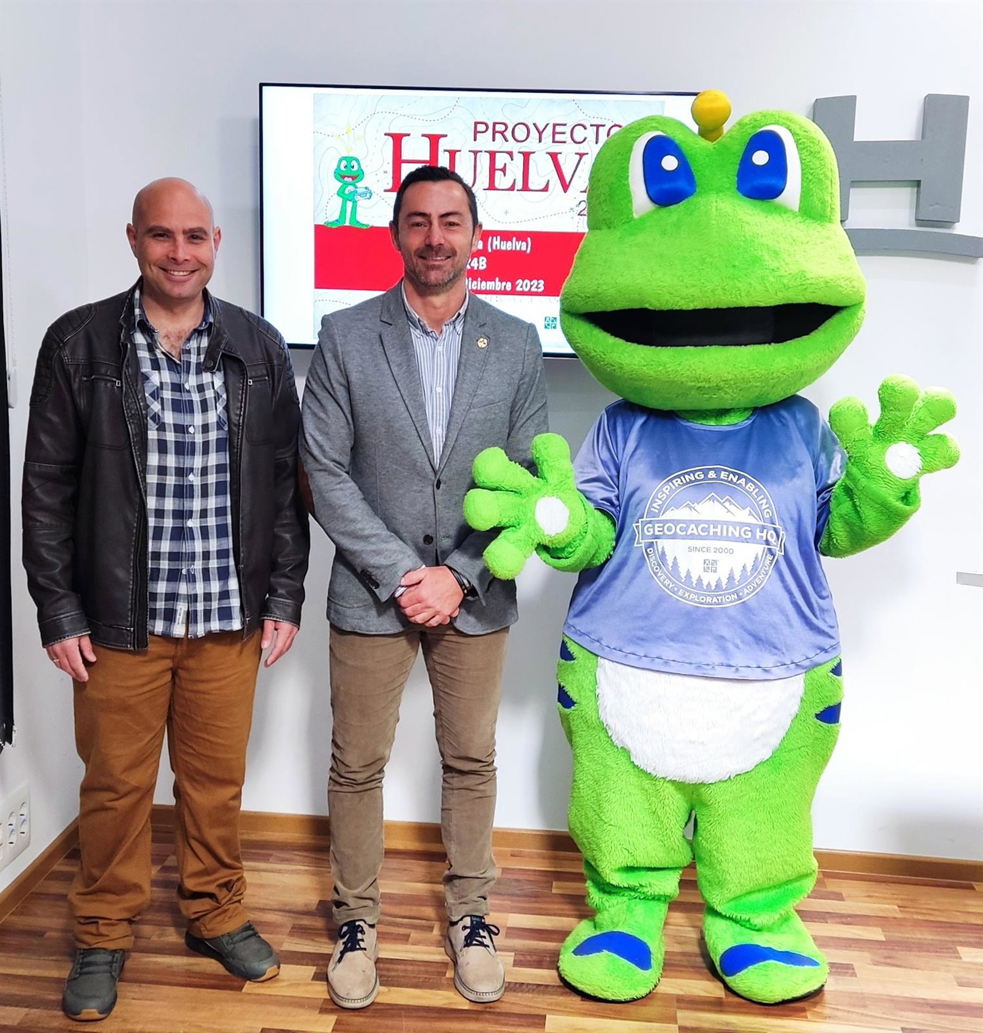 El diputado de la Unidad de Gestión de La Rábida (UGR) y Deportes, Juan Daniel Romero, ha presentado este lunes la actividad denominada 'Geocaching Huelva 2023', junto al jugador y promotor de este proyecto, José Ángel Arazola, y la mascota oficial del evento, Signal the Frog, que ha cruzado el océano Atlántico para reunirse con los fans y seguidores de Huelva. Geocaching es un juego de orientación a nivel mundial que consiste en buscar pequeños 'tesoros' con ayuda de un dispositivo GPS o aplicaciones de móvil.