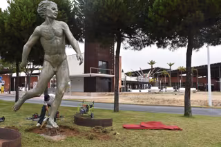Según ha indicado el Consistorio en una nota de prensa, se trata de una réplica de la estatua que la capital onubense tiene en la entrada de la avenida de Andalucía desde la autovía A-49 y que ensalza a la provincia de Huelva como originaria del fútbol nacional.