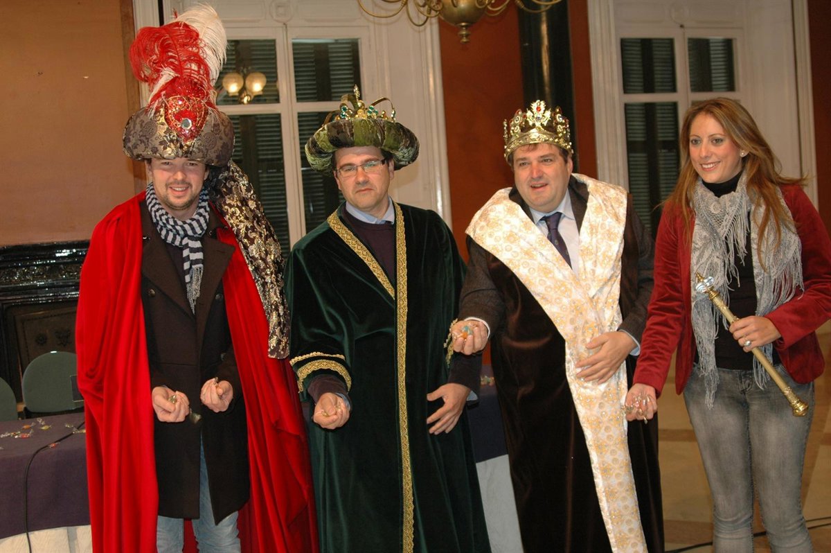 El rector de la Universidad de Huelva, Francisco José Martínez; el director de Cáritas en Huelva, Julio González; y el escultor onubense Elías Rodríguez Picón, encarnarán a los Reyes Magos de 2012, tras haber sido coronados esta mañana por el alcalde de Huelva, Pedro Rodríguez.