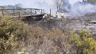 El servicio del Infoca ha dado por extinguido a las 00,40 horas el incendio declarado este jueves en el núcleo de Corrales, en Aljaraque (Huelva), y que provocó que la Dirección General del Tráfico (DGT) cortara el tráfico en ambos sentidos en el kilómetro 1 de la A-492.