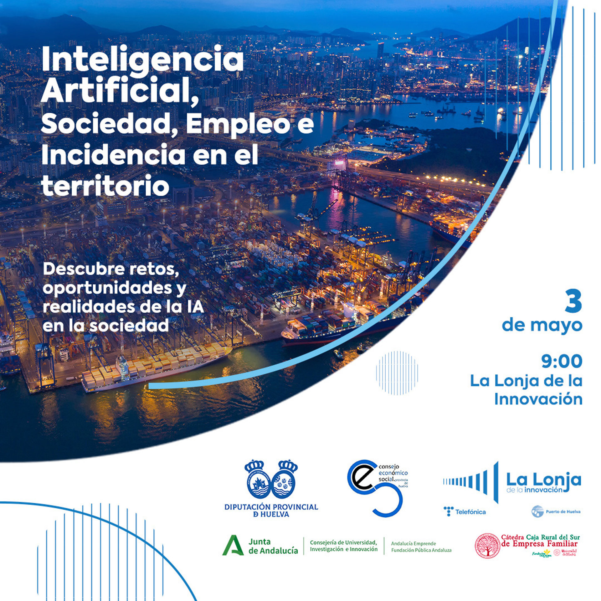 'Inteligencia Artificial, Sociedad, Empleo e Incidencia en el territorio', es el título de la jornada organizada por el Consejo Económico y Social de la provincia de Huelva (CESph) que se celebrará este viernes, 3 de mayo, en La Lonja de la Innovación de la capital onubense.