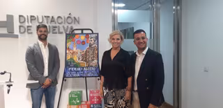 La diputada de Cultura, Gracia Baquero; el alcalde de Rociana del Condado, Paco Pérez, y el concejal de Festejos, Alejandro Hernández, han presentado la programación de la feria y el cartel de esta edición, cuyo autor ha sido Alejandro Mairena, artista de Bollullos par del Condado, localidad a la que va dedicada este año la Feria, haciendo coincidir el 75 aniversario de la imagen de San Bartolomé, con el 75 aniversario de la Coronación Canónica de su patrona, la Virgen de las Mercedes.
