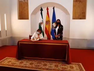 Sandra García firmando en el Libro de Honor del Ayuntamiento de San Fernando - DELEGACIÓN DEL GOBIERNO
