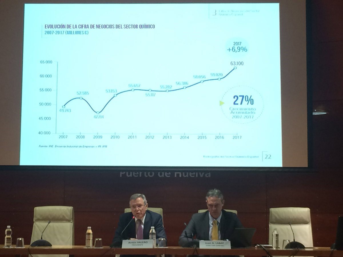 La industria química española ha alcanzado una cifra de negocios de 63.100 millones de euros en 2017, lo que supuso "un crecimiento histórico del 6,9 por ciento respecto a la facturación registrada el año anterior", una cifra impulsada tanto por el comportamiento de la producción como de los precios, que se ha visto también "muy favorecido" por la fortaleza de la demanda internacional de productos químicos.