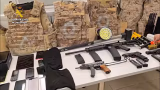 En ellos han sido intervenidos multitud de efectos, entre los que destacan cuatro armas de fuego: un fusil, un subfusil, dos pistolas y una pistola detonadora, todas municionadas. También placas de matrícula dobladas, chalecos antibala, rotativos y linternas de uso policial, pasamontañas, inhibidores de frecuencia, balizas de seguimiento, cámaras de vigilancia o mazas.