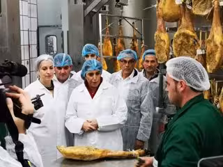 La secretaria general del PSOE de Andalucía, Susana Díaz, visita una empresa en Jabugo (Huelva). - PSOE DE HUELVA.