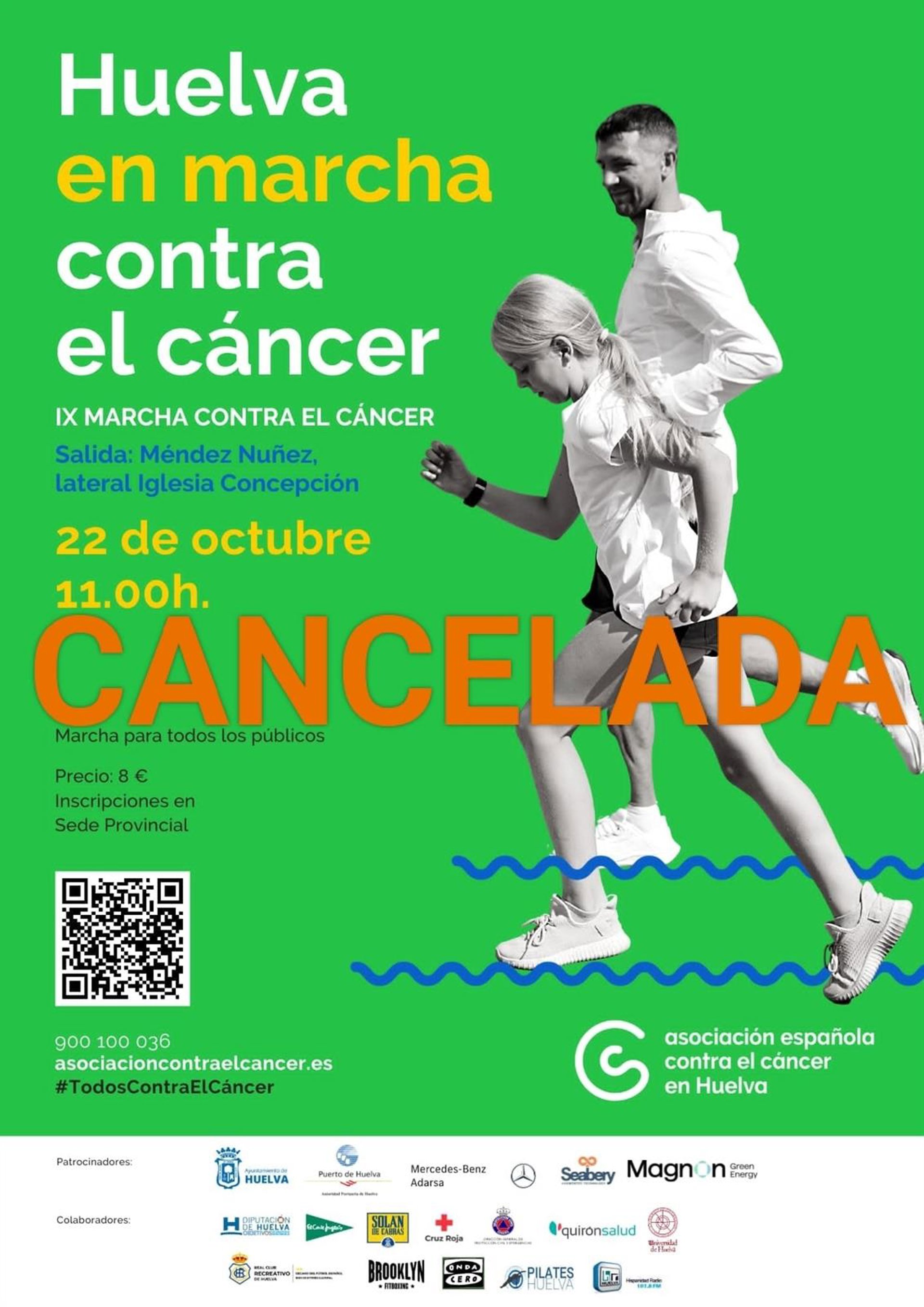 Cartel IX Marcha contra el Cáncer de Huelva Cancelada - AECC HUELVA