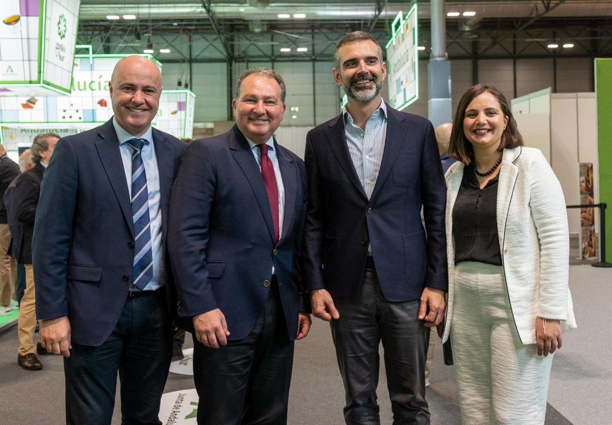El presidente de la Diputación, David Toscano, junto al consejero de Agricultura, Pesca Agua y Desarrollo Rural de la Junta de Andalucía. Ramón Fernández-Pacheco en el Salón Gourmets de Madrid. - DIPUTACIÓN DE HUELVA