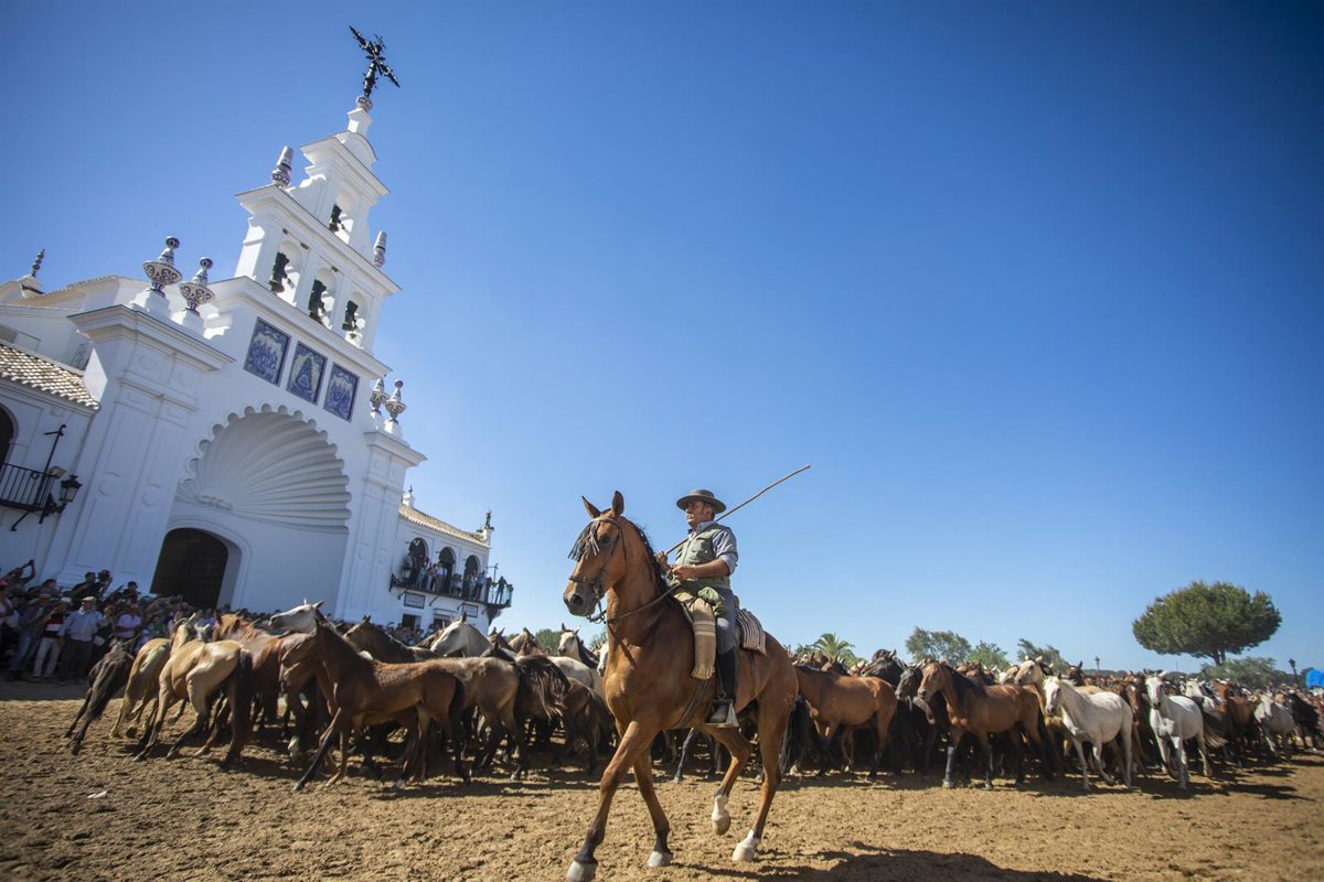 La aldea de El Rocío, en Almonte (Huelva), vivirá este jueves una nueva cita de la Saca de las Yeguas, que tiene lugar cada 26 de junio, cuando las yeguas y potros salen de Doñana para permanecer en Almonte, que se convierte en epicentro de las faenas marismeñas.