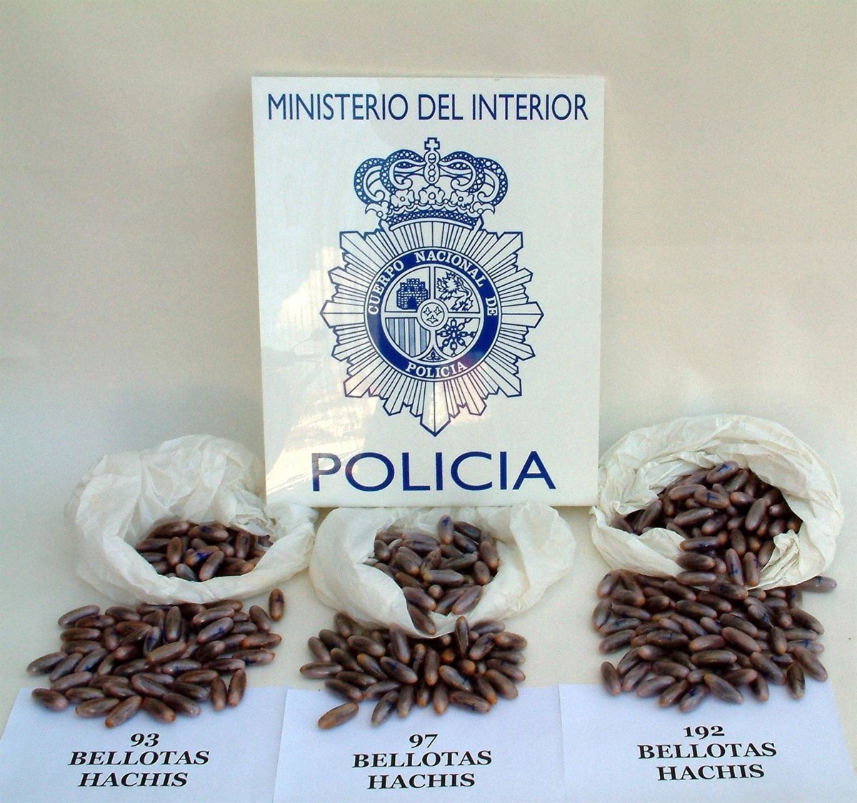 Estas pruebas evidenciaron la existencia de numerosos cuerpos extraños en el interior del organismo. Ante esto, tras provocar los facultativos del centro sanitario su expulsión, se constata que se trataba de una sustancia prensada, de color marrón y plastificada en forma de bellotas. En definitiva, 382 bellotas de hachís que dieron un peso de 4 kilos y 300 gramos. Los detenidos, junto con la droga intervenida, ya han sido puestos a disposición de la autoridad judicial.