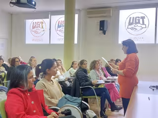 UGT Huelva ha celebrado este martes un seminario en el que se ha proporcionado información y recursos a trabajadores para afrontar la discapacidad sobrevenida en el ámbito laboral. Este seminario está enfocado preferentemente a personas con discapacidad y familiares; personas con incapacidad laboral y familiares, asociaciones y organizaciones no gubernamentales, representantes sindicales, y delegadas y delegados de prevención de riesgos laborales.