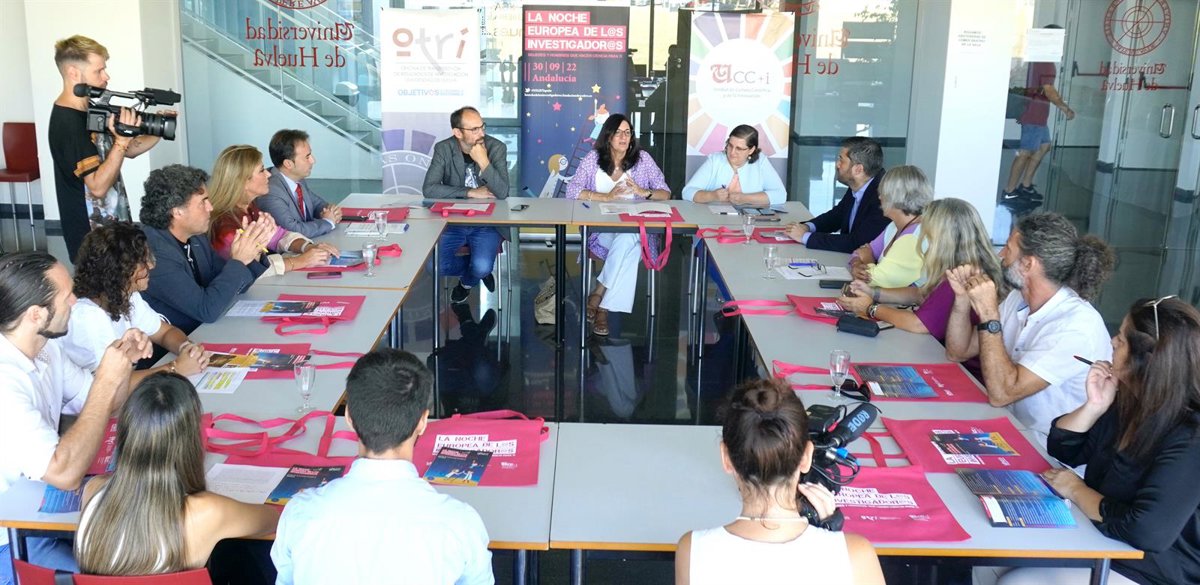 En la presentación de esta edición, la rectora de la Universidad de Huelva, María Antonia Peña, ha afirmado que la Noche Europea de los Investigadores es uno de los eventos "más bonitos y especiales de las universidades, que nos conecta con las ciudades universitarias europeas al unísono y porque es una cita donde la Universidad rompe esa barrera, transparente, pero que existe, entre sus aulas, laboratorios, y la ciudadanía, enseñando lo que se hace y contribuyendo a la transferencia del conocimiento".