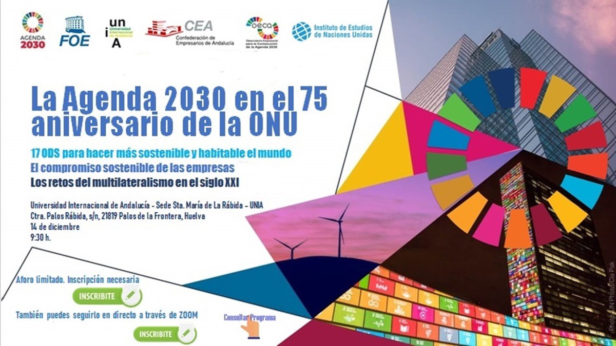 La Universidad Internacional de Andalucía (UNIA) celebrará, en su sede de Santa María de La Rábida en Palos de la Frontera (Huelva), el 14 de diciembre desde las 9,30 a las 12,00 horas, y de manera gratuita, el seminario La Agenda 2030 en el 75 aniversario de la ONU.