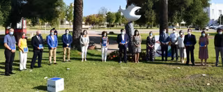 De esta manera, la rectora, acompañada por el alcalde de Huelva, Gabriel Cruz; la vicerrectora de Estudiantes, Ángela Sierra, y por el vicepresidente del Consejo Social de la UHU, Manuel Rubio, en un acto simbólico de apertura del campus tras el cierre por la pandemia y el estado de alarma, y que se ha desarrollado en la Paloma de la Paz de Ernesto Cardenal, ha dado la bienvenida y entregado una placa de agradecimiento a cada institución y entidad colaboradora en este Fondo Social Covid-19.