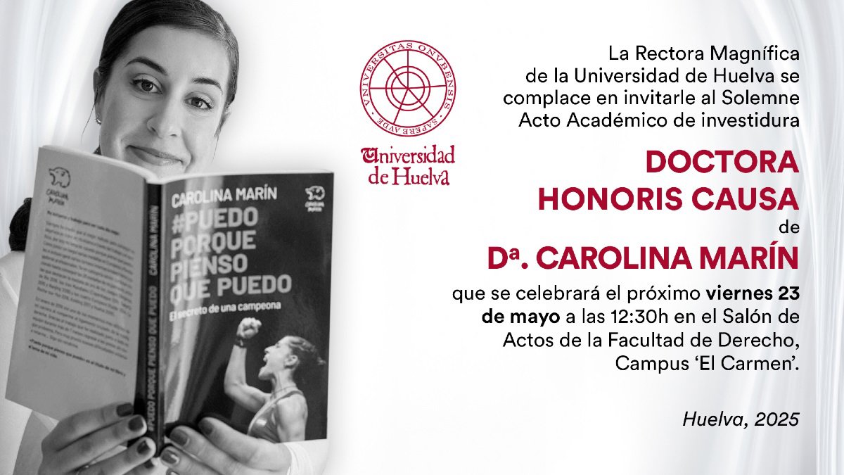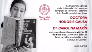 El Consejo de Gobierno de la UHU en su sesión celebrada el 17 de marzo, oído previamente al Claustro Universitario, dio el visto bueno a un nuevo nombramiento de investidura como Doctora Honoris Causa de la UHU, concretamente a la deportista Carolina Marín, a propuesta del Coideso.