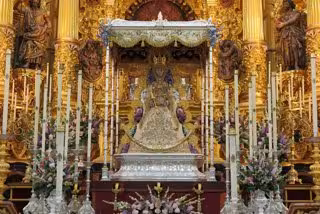 La Virgen del Rocío luce ya en su paso, en el Santuario, de la misma manera que el día de su coronación hace casi un siglo con motivo de su salida extraordinaria, prevista para este sábado, 8 de septiembre, para celebrar el primer centenario desde que se aprobara esta coronación canónica.