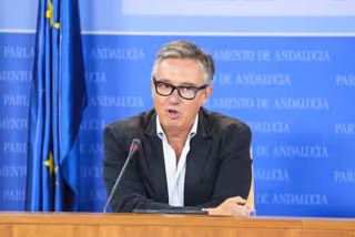 El portavoz del Grupo Parlamentario Vox, Manuel Gavira, durante la ronda de ruedas de prensa de portavoces de los grupos parlamentarios en el Parlamento de Andalucía, a 24 de septiembre de 2025 en Sevilla (Andalucía, España). Los portavoces de los grupos - Joaquin Corchero - Europa Press