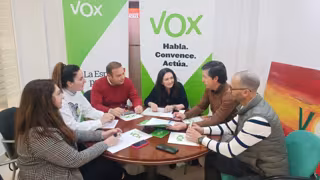 La presidenta provincial de Vox en Huelva, María López, en una reunión con otros miembros de la formación. - VOX HUELVA