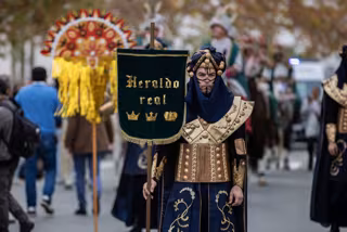 El Heraldo Real, encarnado este año por Antonio Toscano, el caballista conocido como 'El niño del Pinar', llega este viernes a Huelva acopañado por su séquito para anunciar la inminente visita de los Reyes Magos.