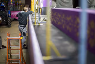 Preparativos de la carrozas de la Cabalgata de Reyes de Huelva capital.