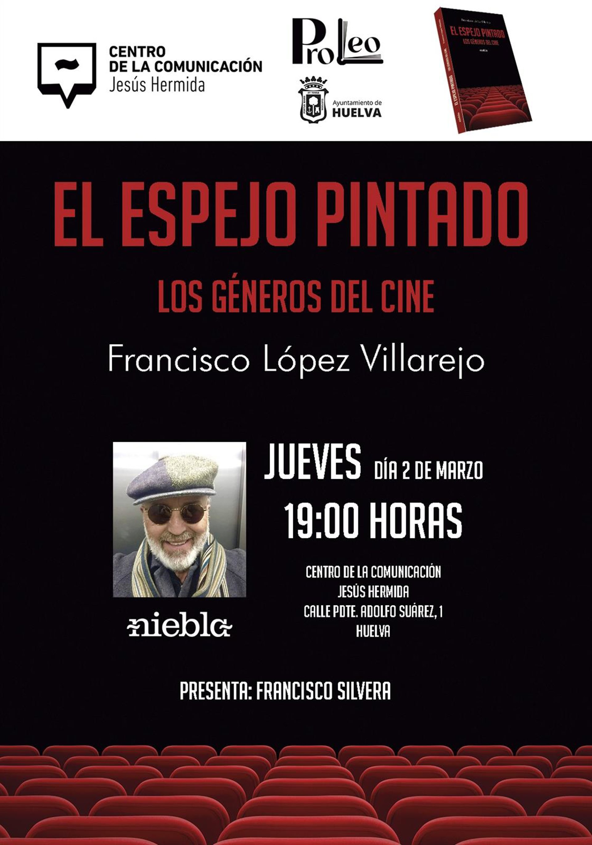 El Centro de Comunicación Jesús Hermida acogerá en la tarde de este jueves, a las 19,00 horas, la presentación el libro 'El espejo pintado: Los géneros del cine', obra del autor Francisco López Villarejo. Una publicación que forma parte del Programa Municipal de Promoción de los Libros de las Editoriales Onubenses (ProLeo), impulsado por la Concejalía de Cultura del Ayuntamiento de Huelva.