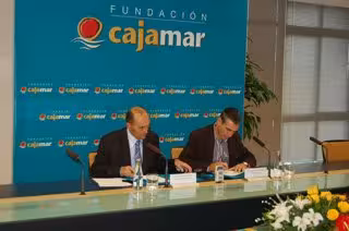 El presidente de la Fundación Cajamar, Juan del Águila, y el presidente de la Asociación de Organizaciones de Productores de Frutas y Hortalizas de Almería, Manuel Galdeano, han firmado este jueves un convenio marco de colaboración para realizar actividades conjuntas relacionadas con la investigación y el desarrollo tecnológico en el ámbito de la horticultura protegida, así como la cooperación en programas de formación de personal técnico y de empresarios hortofrutícolas.