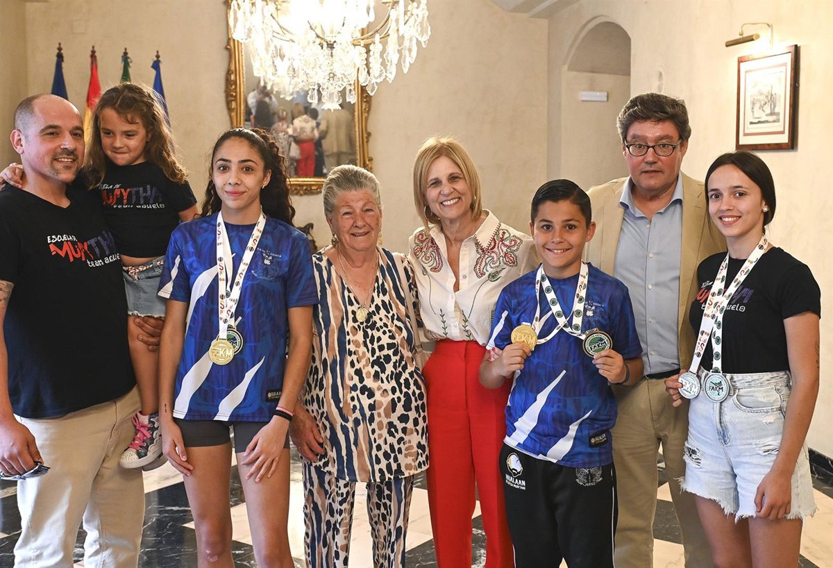 La alcaldesa de Jerez, María José García-Pelayo, acompañada del delegado de Deportes y Educación, José Ángel Aparicio, ha recibido a los jóvenes deportistas de boxeo tailandés de la Escuela de Muay thai El Abuelo Daniel Ruiz (10 años), campeón de España 2025 en -38 kilos, Paula Tordesilla (15 años) subcampeona de España 2025 en -45 kilos, y Malena Ruiz (16 años) campeona de España 2025 en -48 kilos, que han estado acompañados del maestro Sergio Núñez y familiares de los medallistas.