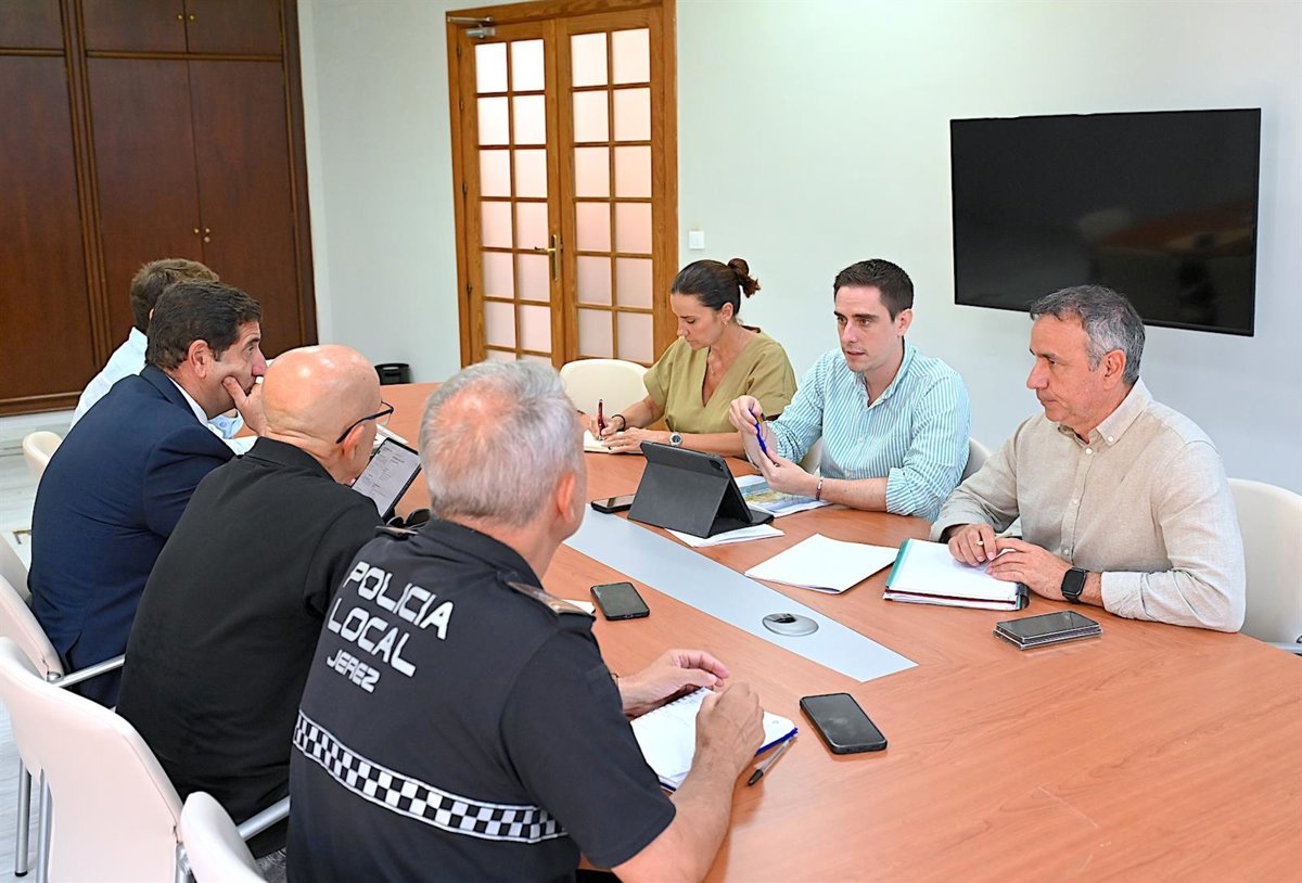 Reunión de los tenientes de alcaldesa de Jerez de la Frontera (Cádiz) Jaime Espinar y José Ignacio Martínez con Jerez UTE y el jefe de la Policía Local, Manuel Cabrales. - MANU LOPEZ IGLESIAS/AYUNTAMIENTO DE JEREZ