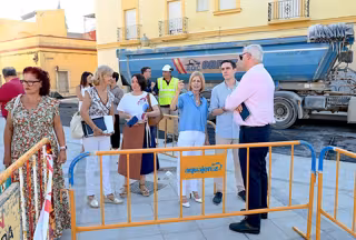 La alcaldesa de Jerez de la Frontera, María José García-Pelayo, acompañada del teniente de alcaldesa Jaime Espinar, y las delegadas de Urbanismo y Participación Ciudadana, Belén de la Cuadra, Carmen Pina y Nela García, respectivamente, ha visitado este miércoles las obras de renovación de redes de abastecimiento y saneamiento en la Ronda Muleros y el entorno de la Plaza del Carbón, además de la estabilización de la propia plaza tras su hundimiento, señalando que tocan a su fin y que este quedarán restablecidos el tráfico y la normalidad en la zona.