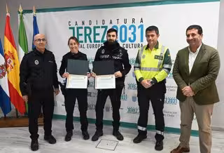 Con este reconocimiento, la Guardia Civil ha querido felicitar a una oficial y un agente de la Policía Local por "la gran profesionalidad, pericia, iniciativa y amor al servicio demostrados en la actuación", ha manifestado el capitán del Subsector de Tráfico de Cádiz de la Guardia Civil, David Vélez Calvo, encargado de felicitar a los agentes, en nombre de la Guardia Civil, en el acto que se ha celebrado en el Ayuntamiento jerezano.