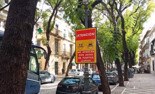 Cartelería avisando de indicaciones ante fuertes lluvias en el centro urbano de Jerez. - AYUNTAMIENTO DE JEREZ