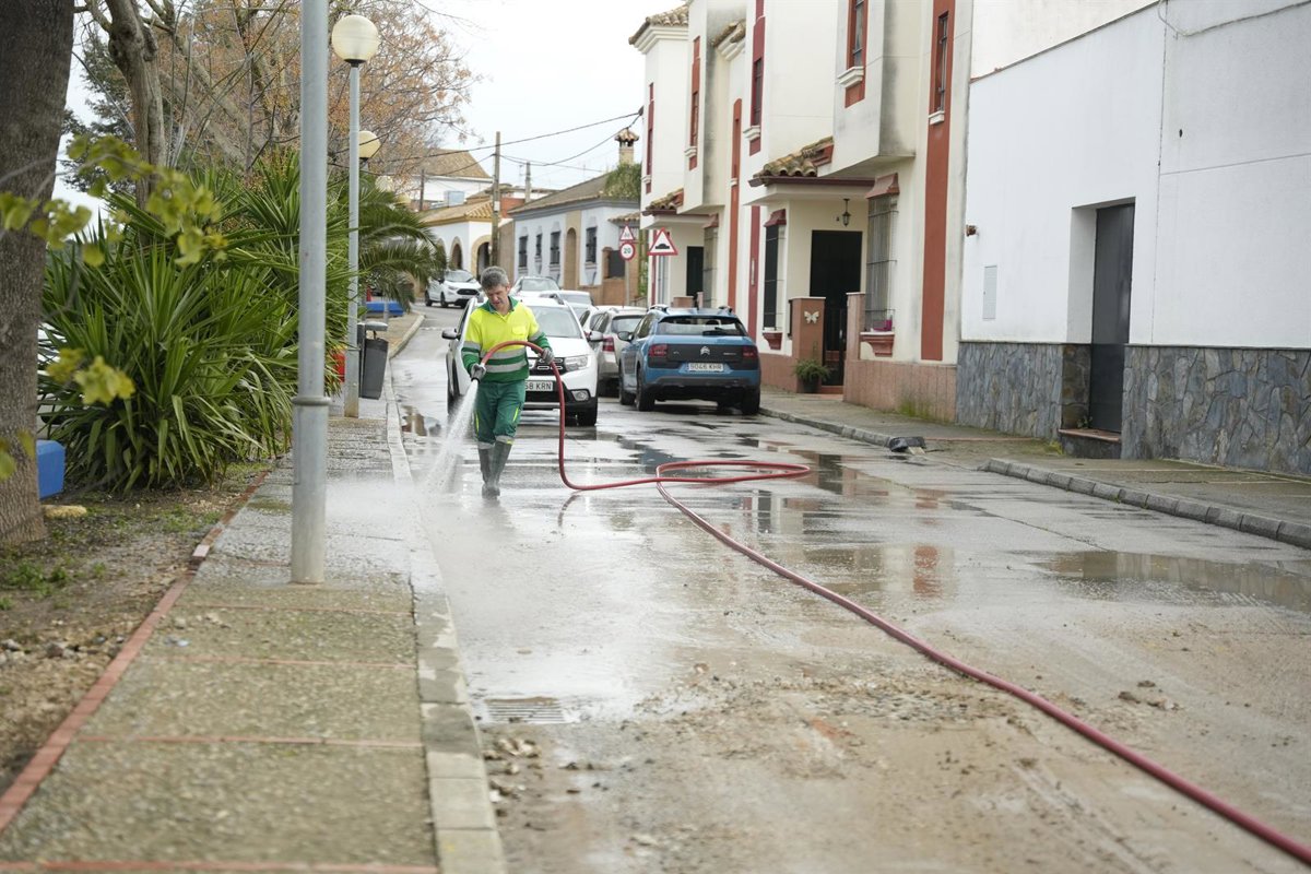 Un operario limpia las calles de Torremegalrejo tras las lluvias de este lunes. - JOAQUÍN CORCHERO/EUROPA PRESS