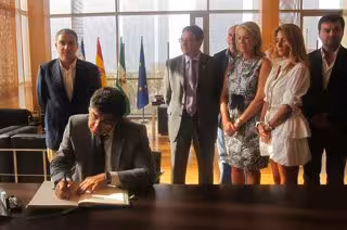 Es la primera vez que Valderas visita la Diputación como vicepresidente de la Junta de Andalucía, por lo que ha firmado en el Libro de Honor de la institución y ha sido recibido oficialmente por Bendodo, los portavoces de los grupos políticos representados en el pleno, así como por diputados del equipo de gobierno.