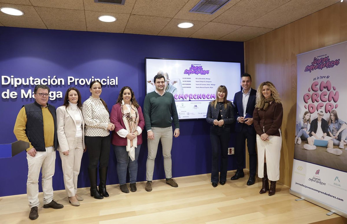 La diputada de Empleo y Formación, María del Carmen Márquez, ha presentado las jornadas junto al director general del Instituto Andaluz de la Juventud, Pedro Ramírez; la delegada territorial de Inclusión Social, Juventud, Familias e Igualdad en Málaga, Ruth Sarabia; y representantes municipales de las localidades en las que se celebrarán los encuentros.