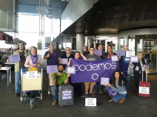 Podemos ha realizado este sábado una performance en el aeropuerto de Málaga-Costa del Sol para criticar la emigración de los jóvenes por la falta de oportunidades en el mercado laboral español.