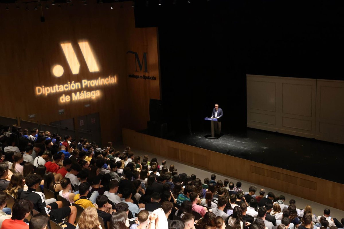 Unos 360 escolares de Secundaria y Bachillerato han asistido este jueves en el auditorio Edgar Neville de la Diputación de Málaga a la representación de la obra teatral 'War and Love' a cargo de la compañía LaJoven. Con esta actividad se han cerrado los actos organizados por la institución provincial con motivo del Día de Europa.