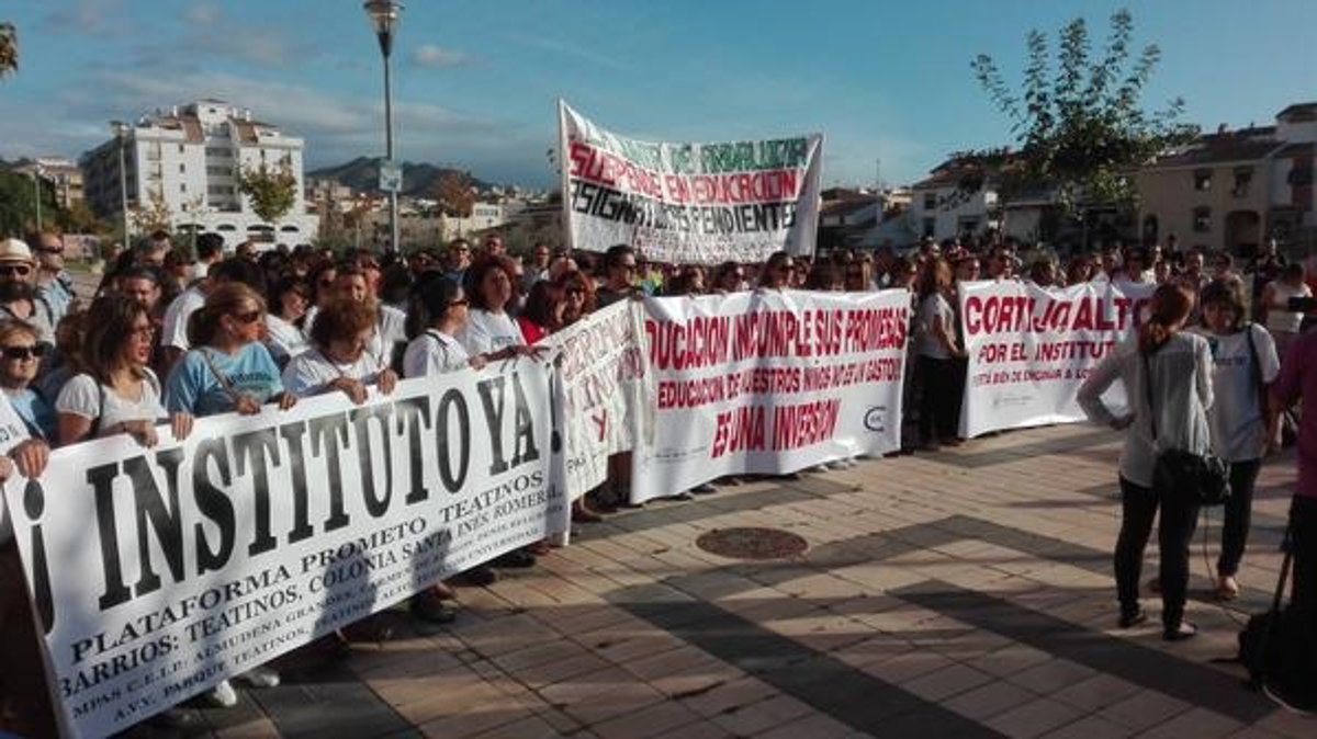 Alrededor de 400 personas se han manifestado este martes para exigir a la Junta de Andalucía que ejecute el presupuesto de 2015 consignado a la construcción del instituto en el distrito de Teatinos, en Málaga capital.
