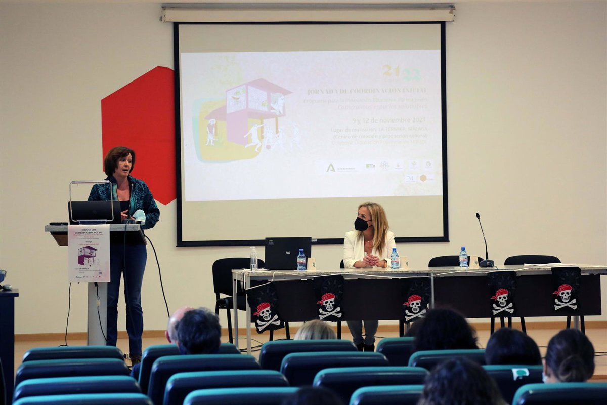 La diputada provincial de Centros Asistenciales, María Esperanza González, ha inaugurado este viernes en las instalaciones de La Térmica de Málaga capital las últimas jornadas de esta semana organizadas por la Junta de Andalucía y dirigidas al profesorado de Primaria y Secundaria de la provincia.