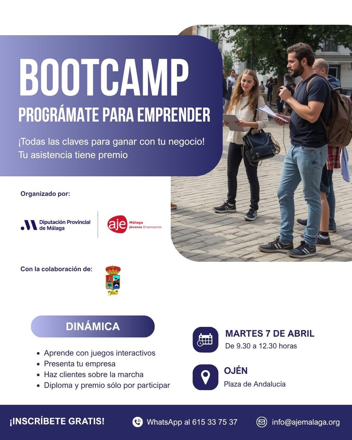 La diputada de Empleo y Formación de la Diputación de Málaga, María del Carmen Márquez, ha explicado que está abierto el plazo de inscripción, que es gratuita y que puede realizarse a través del WhatsApp del teléfono 615337537 y del correo electrónico info@ajemalaga.org.