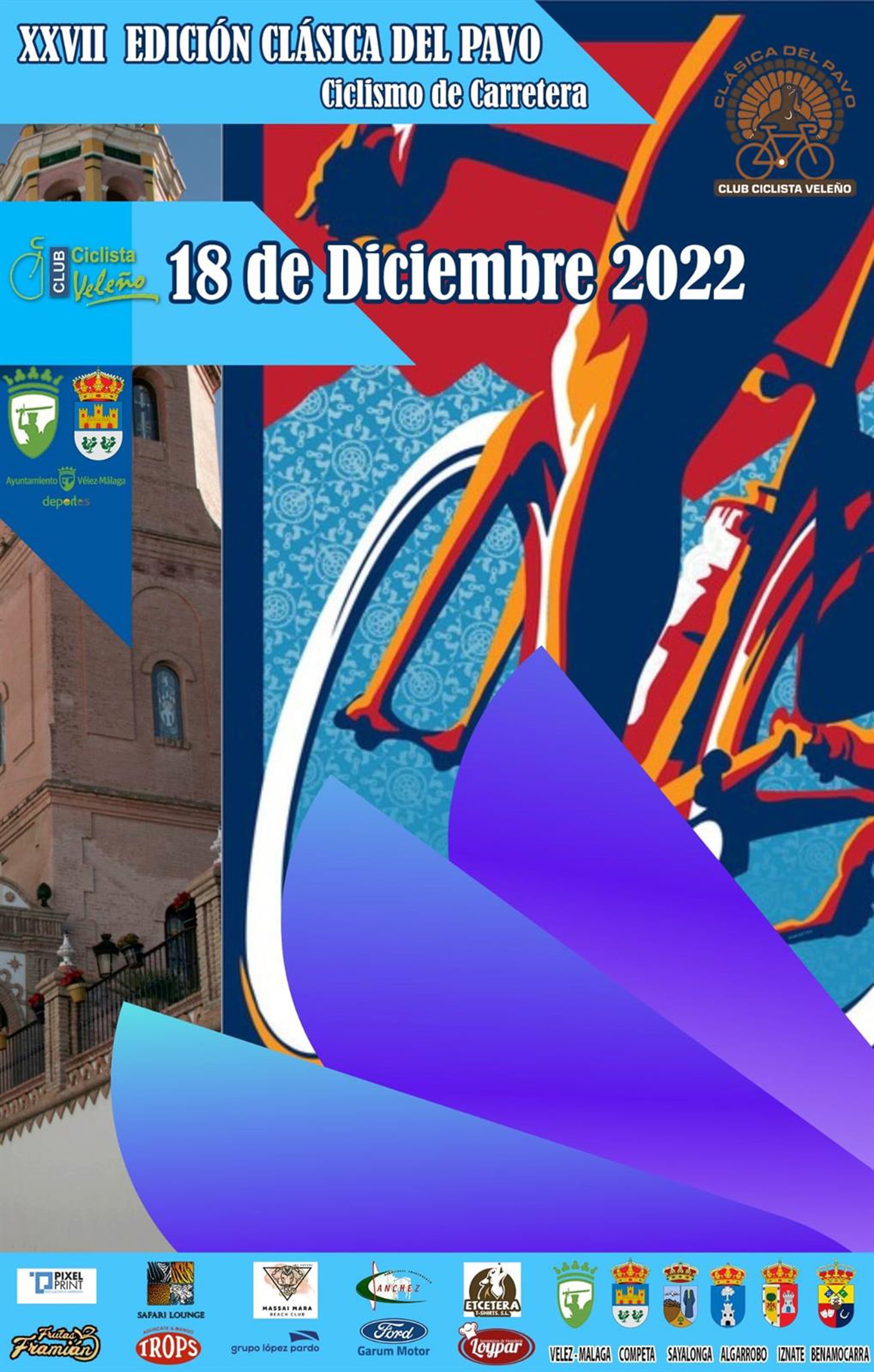El plazo de inscripción para la XXVII Clásica del Pavo que se celebrará el 18 de diciembre entre Vélez-Málaga y Cómpeta (Málaga) ya está abierto. La cita deportiva organizada por el Club Ciclista Veleño se trata una modalidad cicloturista de carretera de tramo libre conformada por 54 kilómetros.