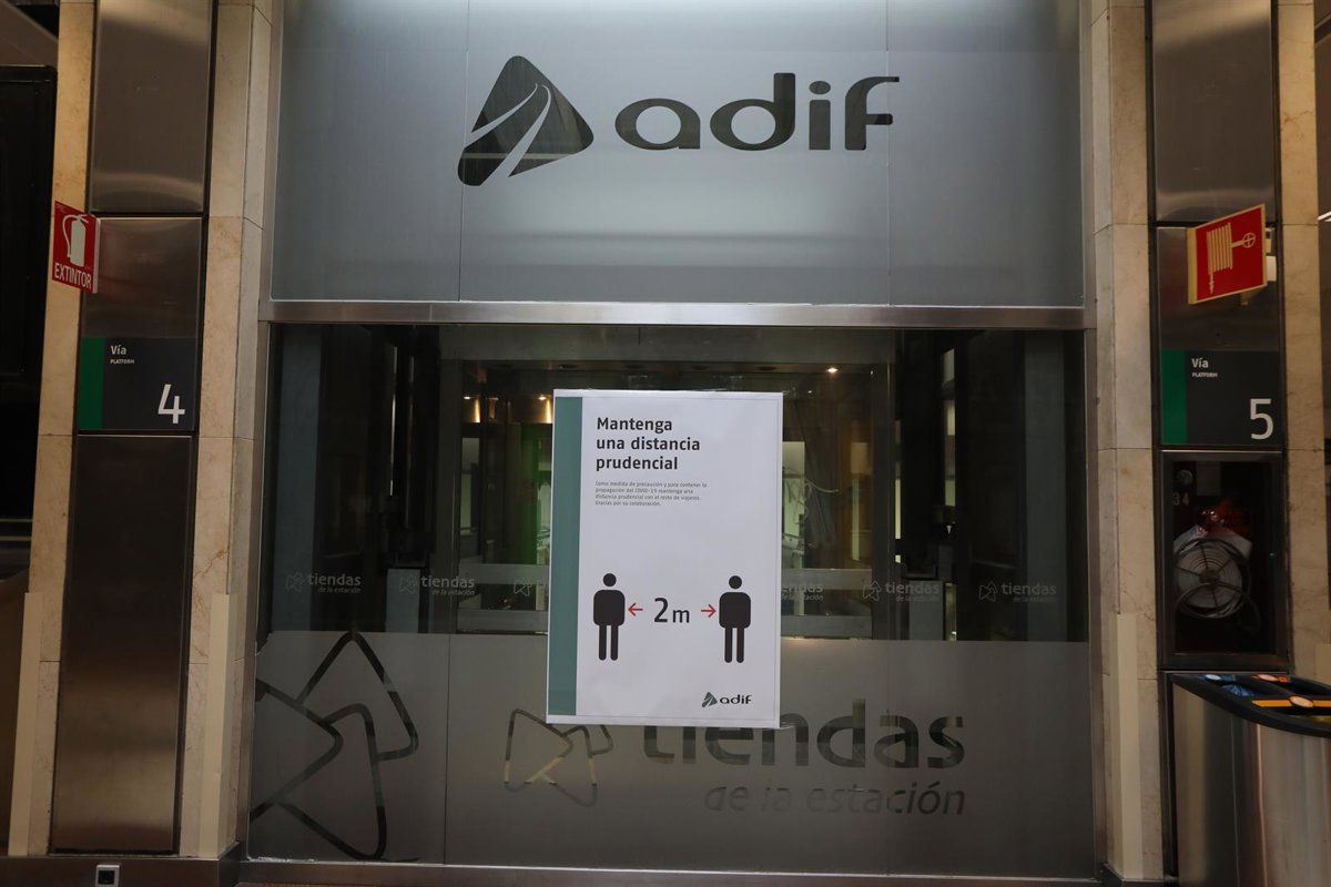 Cartel en el que se lee 'Mantenga una distancia prudencial' en la Estación de Chamartín - Marta Fernández Jara - Europa Press - Archivo